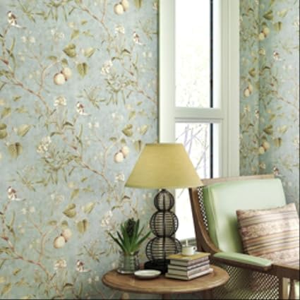 Papier Peint Pastorale Americain Avec Fleurs Et Oiseaux Peinture Murale Pommier Rouleau De Papier Peint Jaune Vert Papier Peint Sticker Mural Bleu Qz035 0 53x10m Amazon Fr Bricolage