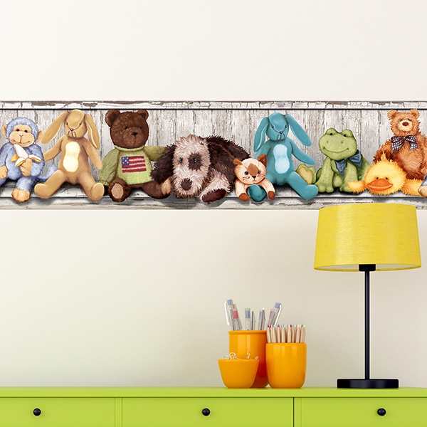 Frise Murale Pour Enfants Animaux En Peluche Sur L Etagere Webstickersmuraux Com